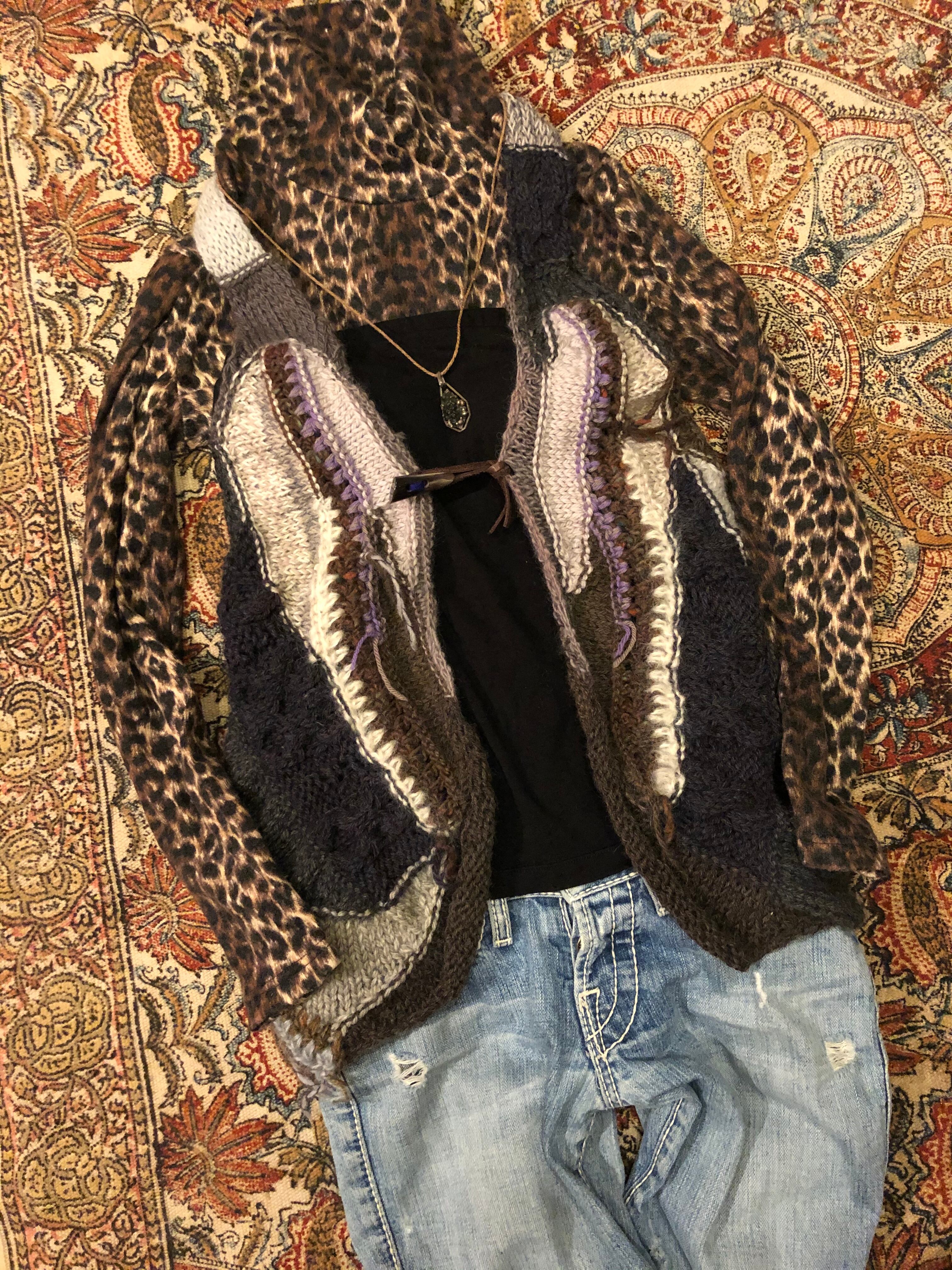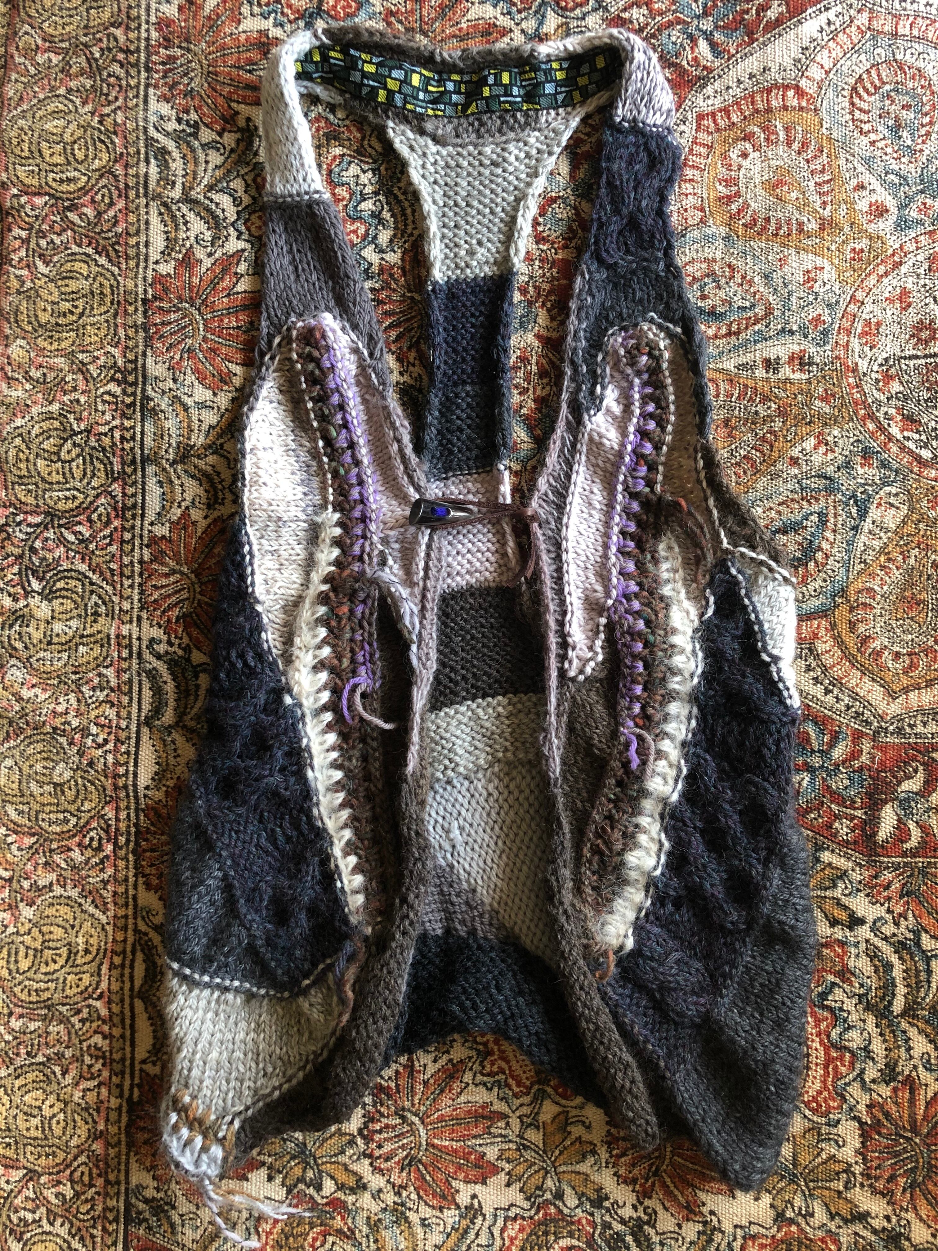 さまざまな編み方を組み合わせ、アシンメトリックに仕上げた一点物のベストです