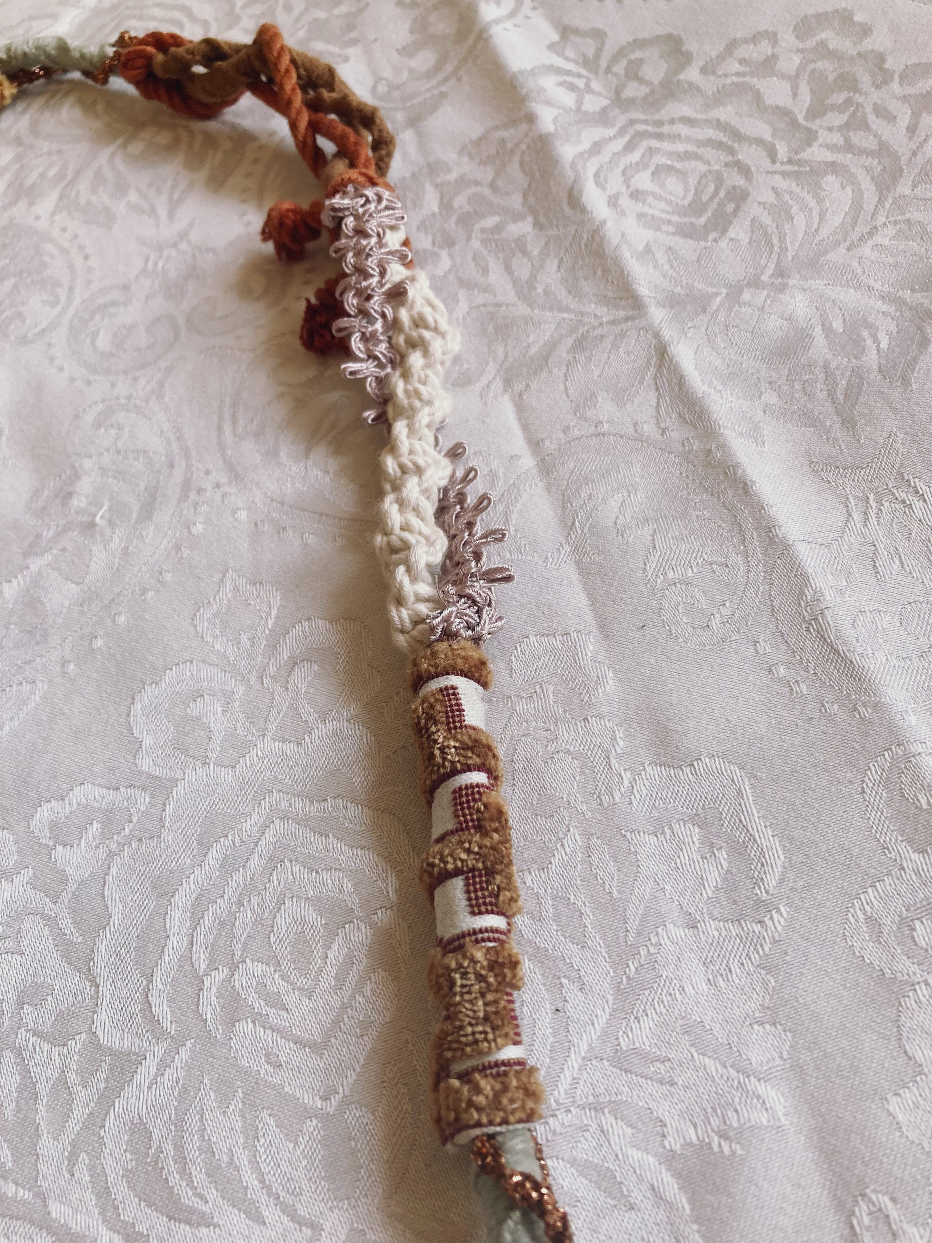 モロッコの立体感あるブレード、インドのブレード、西陣織のロープetcさまざまな素材を組み合わせ、